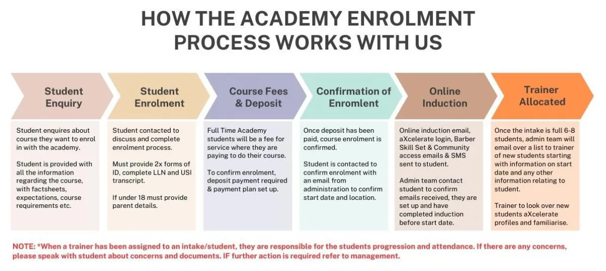 The email will consist of student name and additional notes. The trainer is responsible to familiarize themselves with the student by looking at their aXcelerate profile and checking with credit transfers etc.