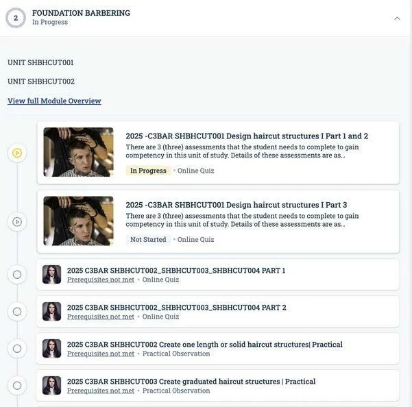 For example; SHBHCUT001 must be completed before SHBHCUT002/SHBHCUT003/SHBCUT004 - Once SHBHCUT001 is Satisfactory, the other modules will open automatically.